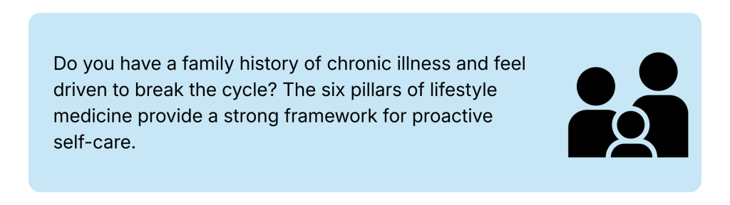“Lifestyle medicine is the evidence-based medical specialty that treats root causes with therapeutic lifestyle interventions. Grounded in six interconnected pillars, lifestyle medicine treats, reverses, and prevents chronic conditions like type 2 diabetes, obesity, cardiovascular disease and more.”