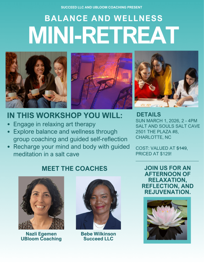 - Group coaching and guided reflection to clear mental clutter and make realistic plans to improve your health, wellness and work life balance.